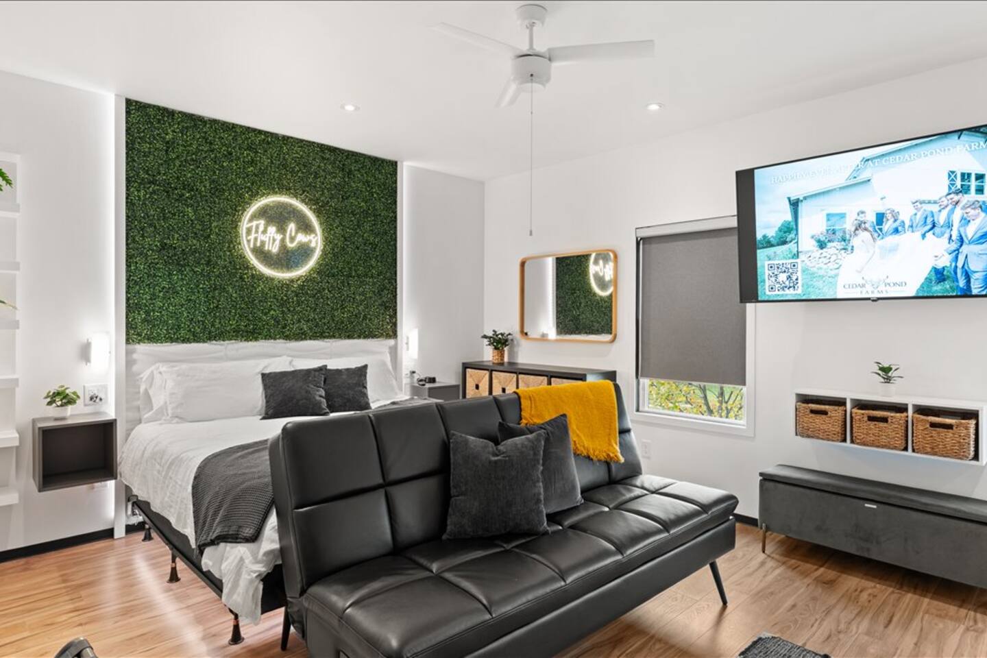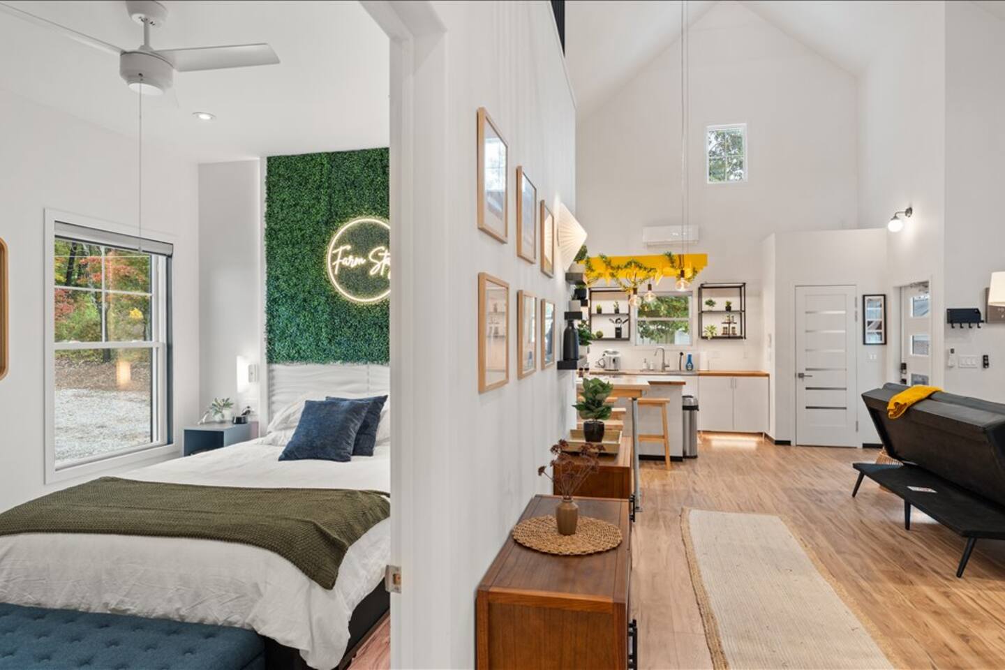 Welcome to Fairland Ridge at Cedar Pond Farms. Bespoke and elevated stays are our business in the Jefferson City area. Enjoy our Scottish Highland Farm with a European style apartment inside and a quaint barndominium style building outside. Everything you need from a washer and dryer to a full kitchen. With our 2 king beds, 1 queen bed, & 4 full-sized futon couches, you can comfortably fit up to 14 guests total. We are only 25 miles from Sevierville, UTK & 3 Miles from CNU.