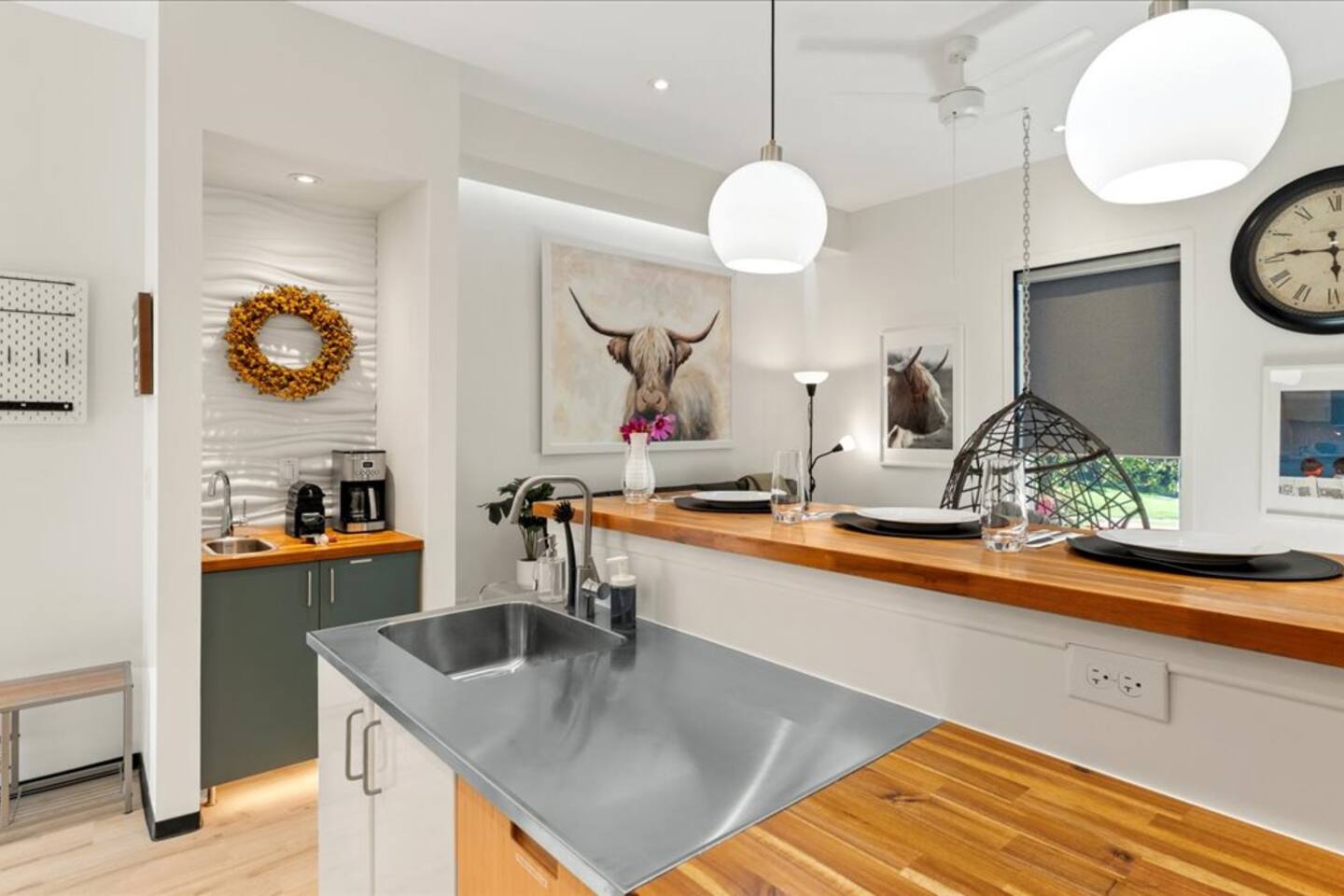 Welcome to Fairland Ridge at Cedar Pond Farms. Bespoke and elevated stays are our business in the Jefferson City area. Enjoy our Scottish Highland Farm with a European style apartment inside and a quaint barndominium style building outside. Everything you need from washer and dryer to a full kitchen. You will not be disappointed. With our full-sized futon couch and queen bed, you can comfortably fit up to 4 guests. We are only 25 miles from Sevierville, UTK & 3 Miles from CNU.