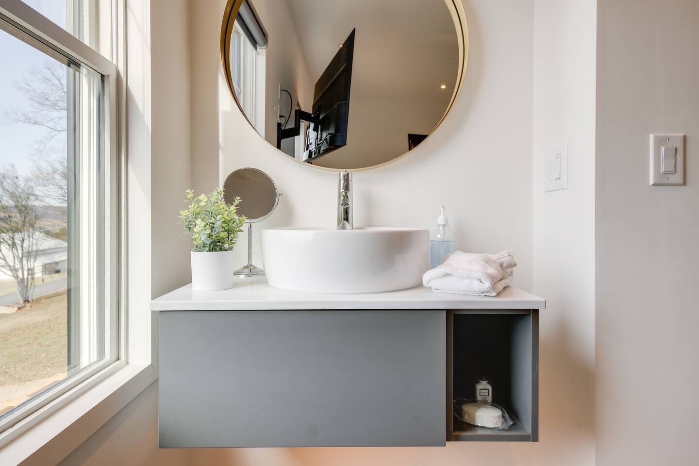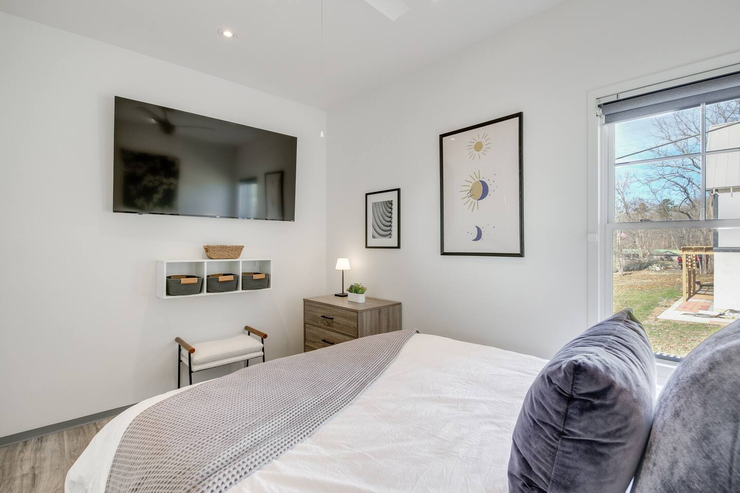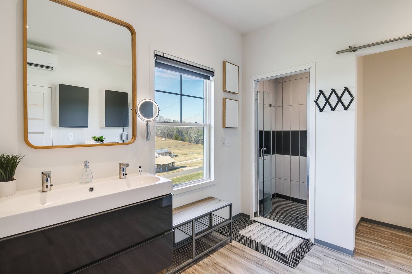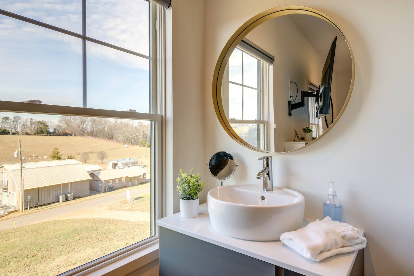 Inside, enjoy thoughtfully curated details, including: - A fully stocked kitchen with high-end appliances and fresh flowers upon arrival - Luxury embroidered robes for a boutique hotel experience - Smart home technology for a seamless stay - Washer and dryer combo for added convenience - Room-darkening shades for a restful night’s sleep Additional Amenities - High-speed WiFi and Smart TV for entertainment - Safe for personal valuables - Plush towels, linens, and toiletries including body soap, shampoo, conditioner, and shower gel - Heating and air conditioning for year-round comfort This luxury farm retreat offers a perfect balance of modern sophistication and peaceful rural charm. Whether you're here for work, relaxation, or adventure, you'll find comfort, convenience, and a truly unique experience waiting for you. Book your stay today and enjoy the best of East Tennessee in style.