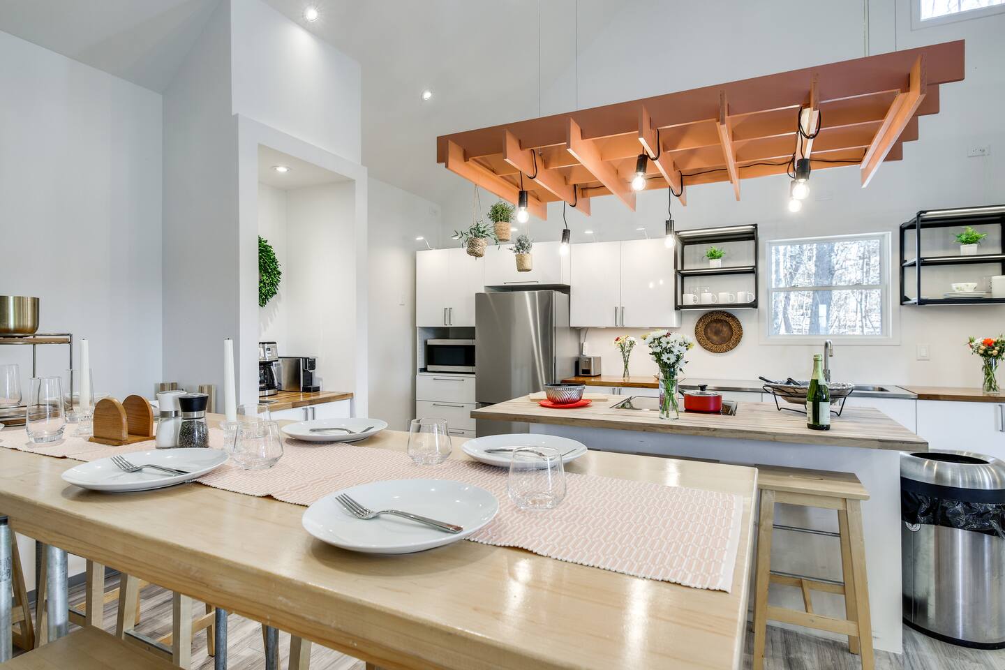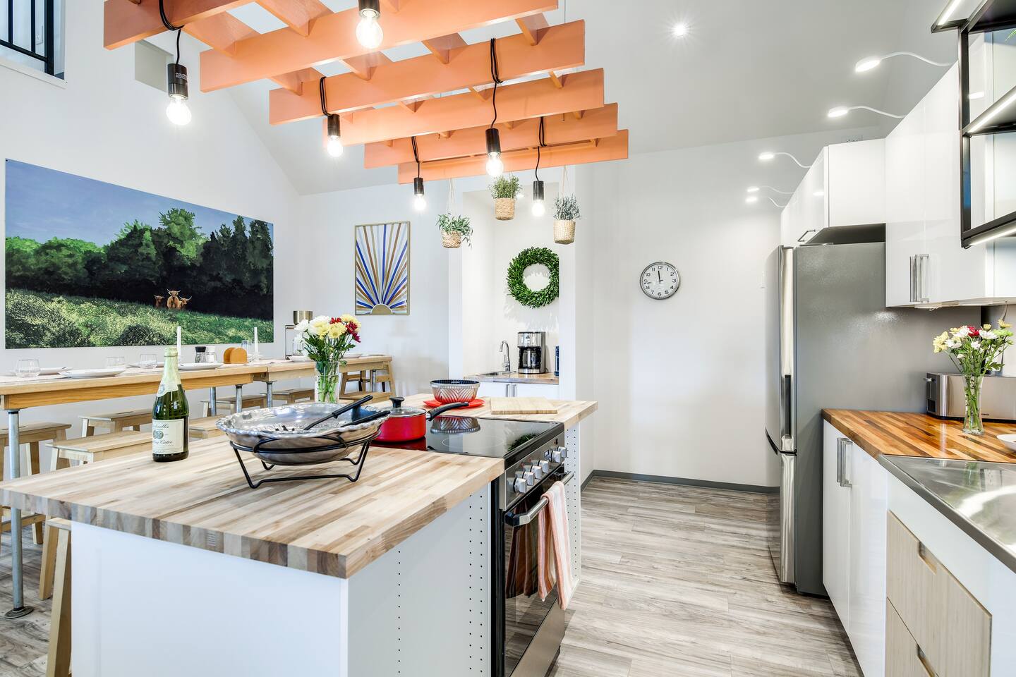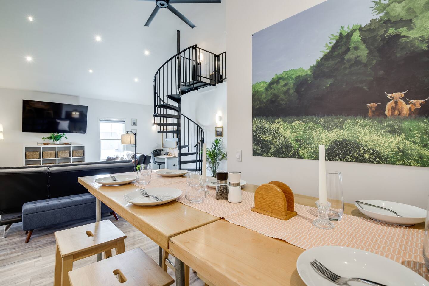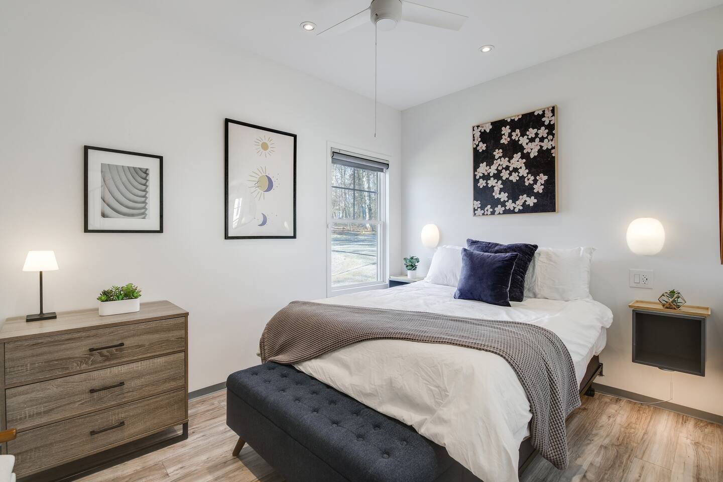 Inside, enjoy thoughtfully curated details, including: - A fully stocked kitchen with high-end appliances and fresh flowers upon arrival - Luxury embroidered robes for a boutique hotel experience - Smart home technology for a seamless stay - Washer and dryer combo for added convenience - Room-darkening shades for a restful night’s sleep Additional Amenities - High-speed WiFi and Smart TV for entertainment - Safe for personal valuables - Plush towels, linens, and toiletries including body soap, shampoo, conditioner, and shower gel - Heating and air conditioning for year-round comfort This luxury farm retreat offers a perfect balance of modern sophistication and peaceful rural charm. Whether you're here for work, relaxation, or adventure, you'll find comfort, convenience, and a truly unique experience waiting for you. Book your stay today and enjoy the best of East Tennessee in style.