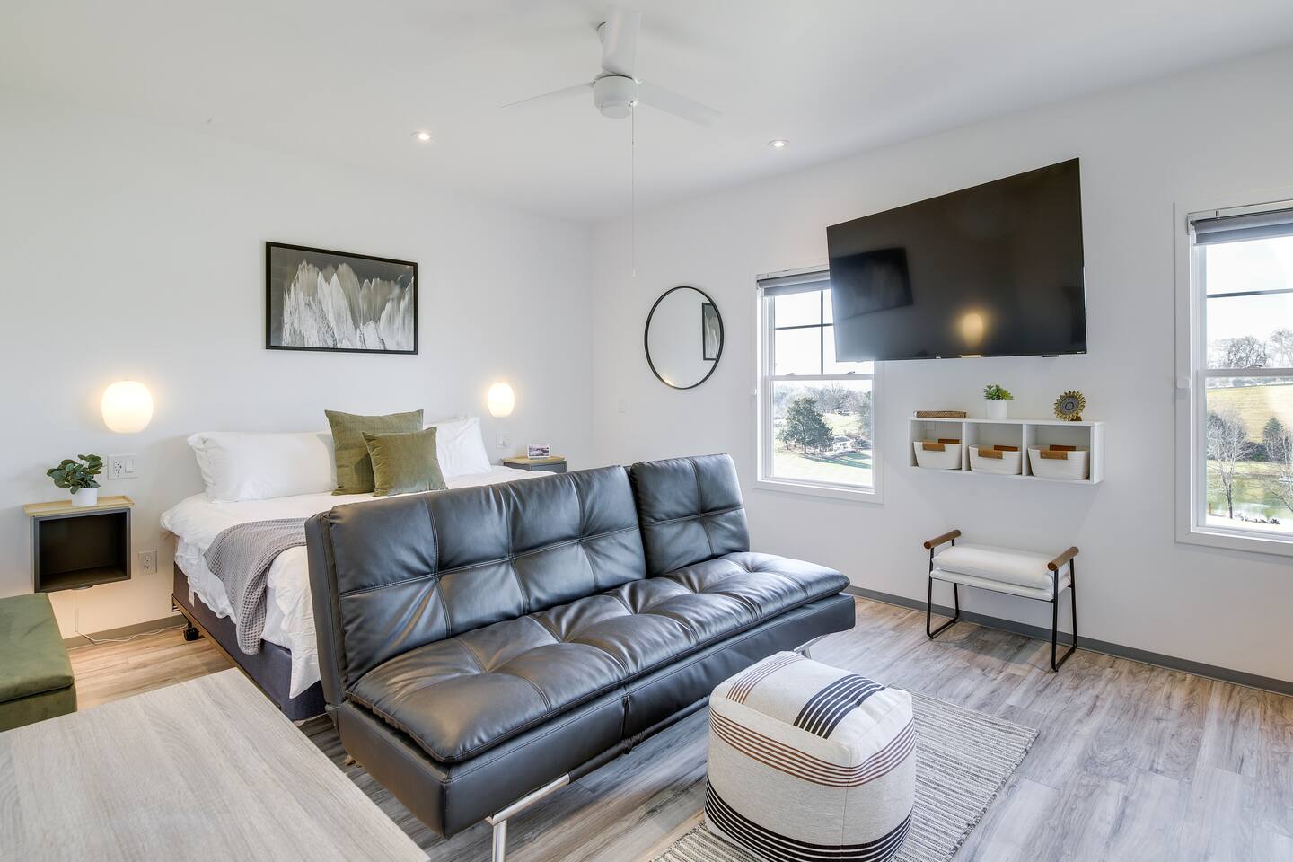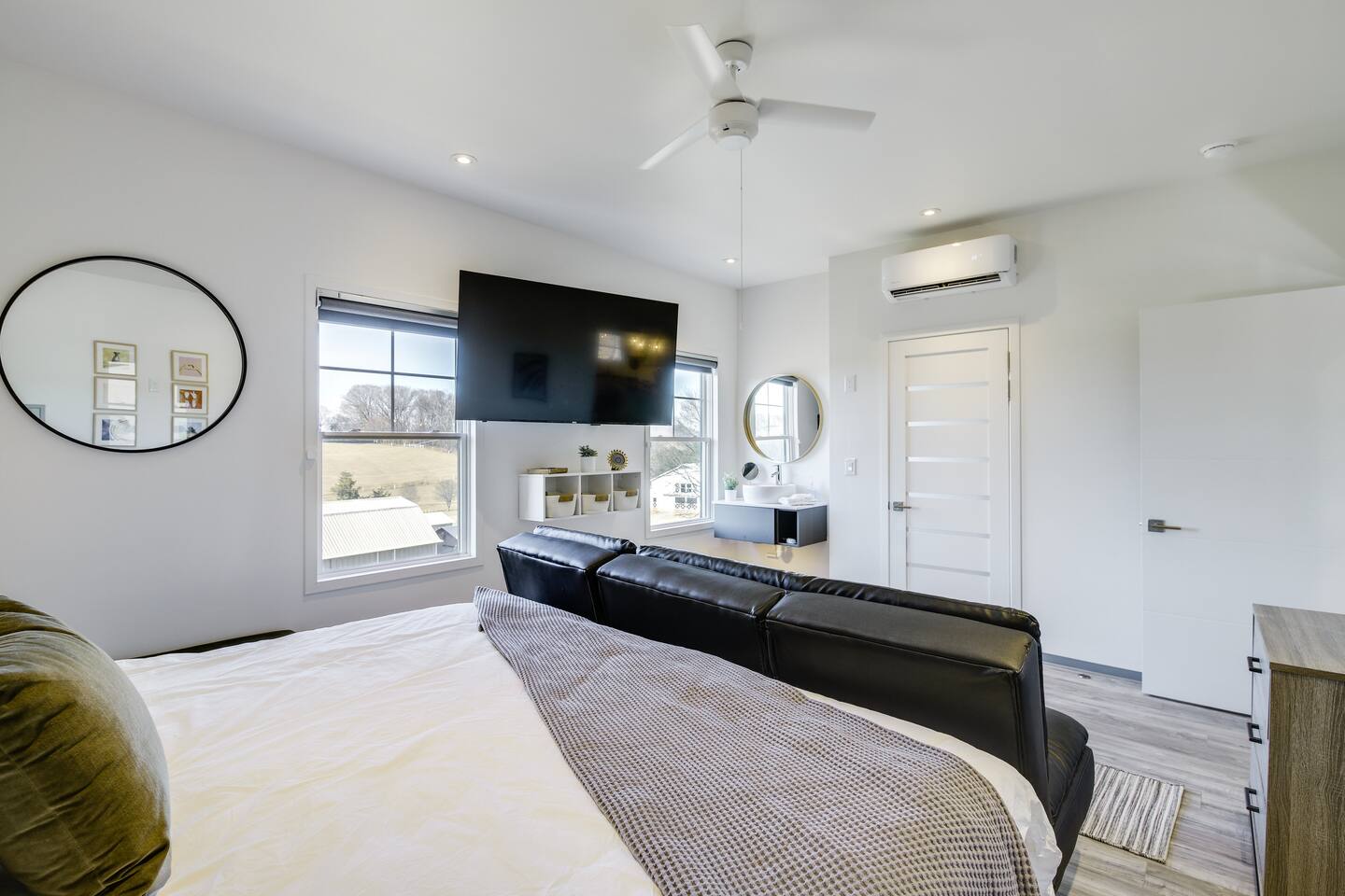 Welcome to Fairland Ridge at Cedar Pond Farms. Experience the best of East Tennessee farm life with the comfort of modern European luxury. This high-end apartment blends contemporary design with a peaceful countryside setting, offering the perfect escape for couples, solo travelers, and business guests. With premium finishes, smart home technology, and a fully equipped kitchen, this retreat is designed for relaxation and convenience. We are 25 miles from Dollywood, UTK & 3 Miles from CNU.